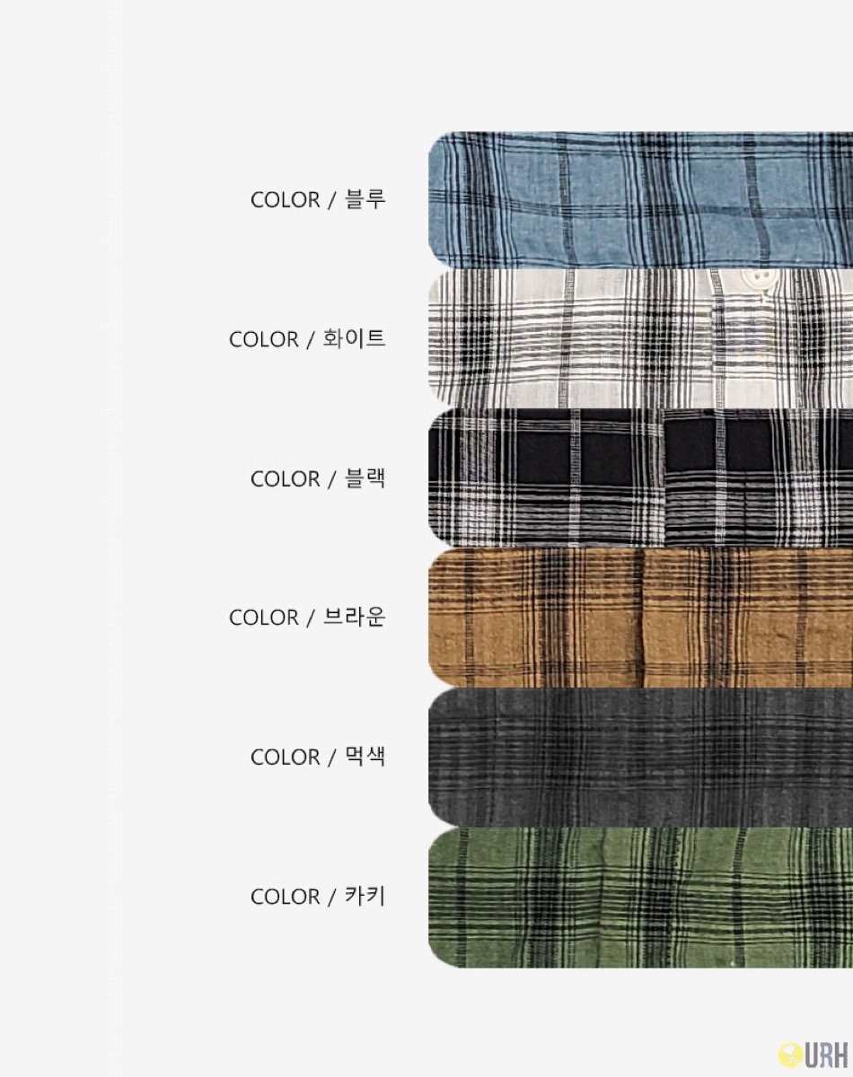 화이트 White (白色) / 블루 Blue (藍色) / 브라운 Brown (啡色) / 카키 Khaki (卡其色) / 먹색 Charcoal (炭灰色) / 블랙 Black (黑色)